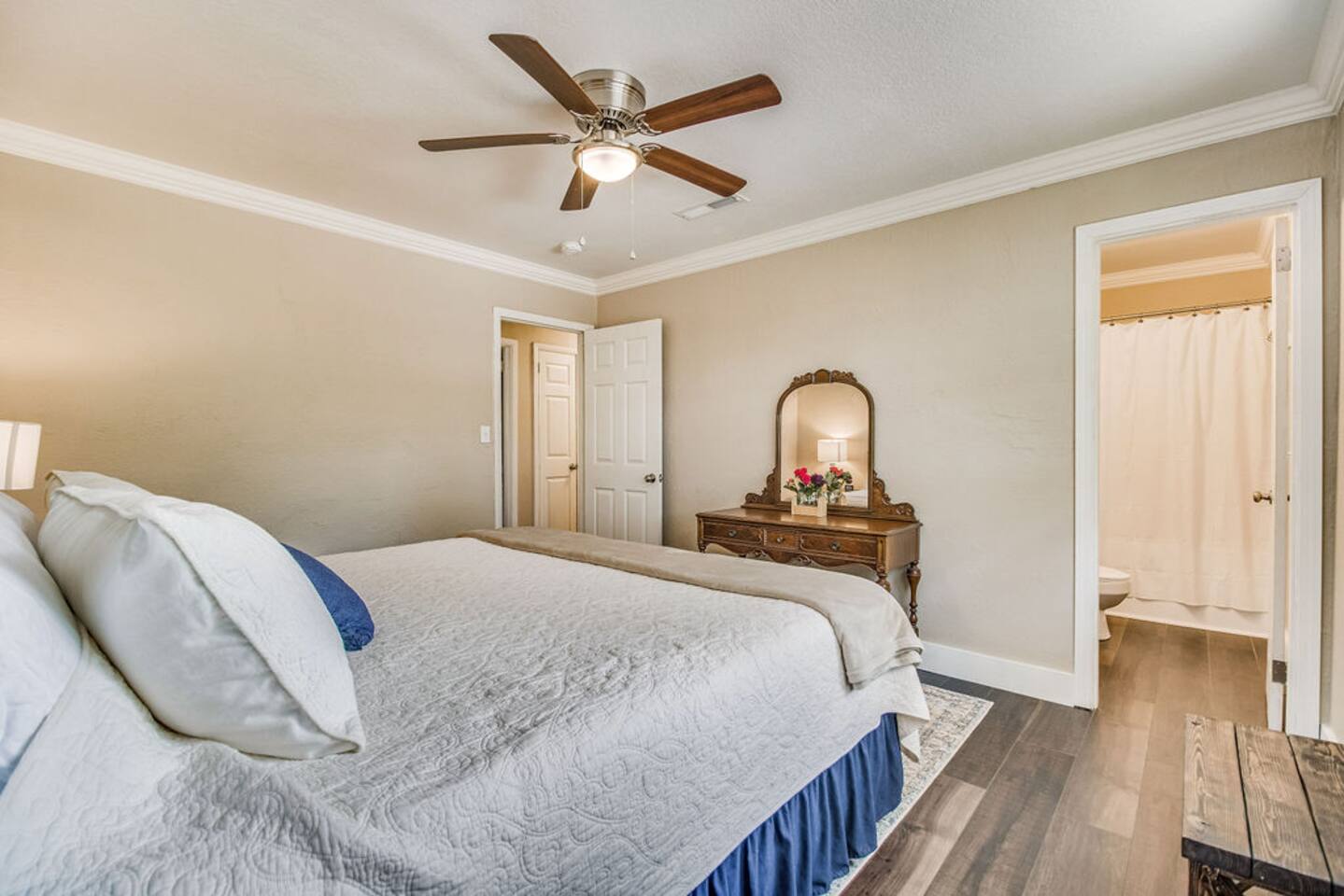 Known as the "City of Five Flags" Pensacola is a beautiful historic town near breathtaking Pensacola Beach. Our spacious, pet- and family-friendly home captures a bit of historic Pensacola and southern charm, providing a relaxing retreat after a busy day exploring the beach or downtown. Our home features four bedrooms and sleeps 8 comfortably in beds. • The master suite with King size Tempurpedic bed has it's own full bathroom, plus a sitting room which also opens onto the covered patio; this room offers extra sleeping space on the sofa bed (on request and additional fee) and has a smart Roku TV. • There are two additional bedrooms downstairs; one with a queen bed and the other with two twin beds perfect for kids. • The large upstairs bedroom features a queen bed on one side and a cute spot on the other where you can get comfortable with a book or play games (an airbed can be set up on request for additional sleeping space - please note that guests over 8 do require an additional fee). • All bedrooms feature room darkening blinds and ceiling fans. If you are visiting for work, you'll appreciate the office, complete with desk, wi-fi (now with highspeed fiber!) and wireless printer. The kitchen is fully equipped with everything you need to enjoy a home cooked meal (including place settings for 12) at the central dining table which seats 8. The main living room features an open concept, with comfortable seating and a large smart Roku-equipped TV where you can log in to your favorite streaming services. French doors (with internal blinds) open onto the back patio and another French door opens to a storage sunroom where a collection of outdoor games (cornhole, badminton, giant horseshoes, etc) are stored. Enjoy the beautiful Florida weather in the large fenced-in yard featuring a fire pit, propane grill, covered outdoor dining area (table for 6 with an overhead fan and privacy shades!), patio seating and room to play yard games. If you prefer inside, you'll be entertained with two smart TVs, wi-fi, books and board games. Kids will enjoy the special assortment of kids games, books and the outdoor fun. Top notch amenities, with everything you need to make you feel at home, and even a beach cart with chairs, umbrella, beach towels, cooler bag & sand toys for the kids! We welcome pets, upon approval, with a $75 per pet fee. We believe in Transparent Pricing! The total price you see on Airbnb now includes all fees but we want you to understand what you are paying: a $225 cleaning fee, a $75 pet fee per pet, and an extra guest fee of $25 per night per person (for groups over 8), plus the fee that Airbnb charges guests. Our home is professionally cleaned, and we proudly pay our cleaners a living wage. We believe in fair, transparent pricing so you can book with confidence! A multi-time superhost since 2017, we know that cleanliness matters! Our home is professionally cleaned after each stay and all linens are washed between guests - including quilts, blankets, mattress pads and pillow protectors. Veteran owned and operated. Five Flags Retreat is conveniently located near downtown Pensacola, a short drive to Pensacola Beach, Gulf Islands National Seashore and multiple state parks. The environment and sustainability is important to us. Recycling is available at this location and separate bins are provided for your use. Sheets are organic cotton and we do our best to use eco-friendly toiletries, cleaning and laundry supplies when available. Please note that a signed Vacation Rental Agreement is required and is sent by email so we must collect your email address. Photo ID is also required for compliance of our minimum age requirement.