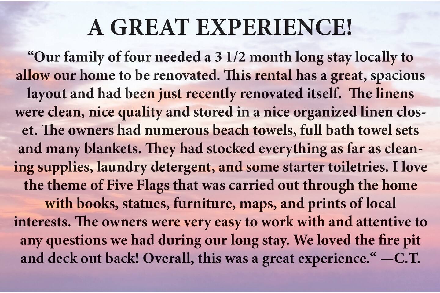 Five Flags Retreat, Family and Pet Friendly